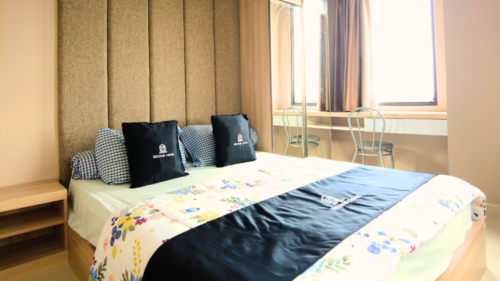 Ruang nyaman dengan 2 kamar: 1 kamar dengan queen bed dan 1 kamar dengan single bed, dilengkapi dapur, 1 kamar mandi, serta ruang tamu luas dengan Smart TV. Cocok untuk keluarga kecil atau teman yang ingin menginap bersama dengan nyaman.