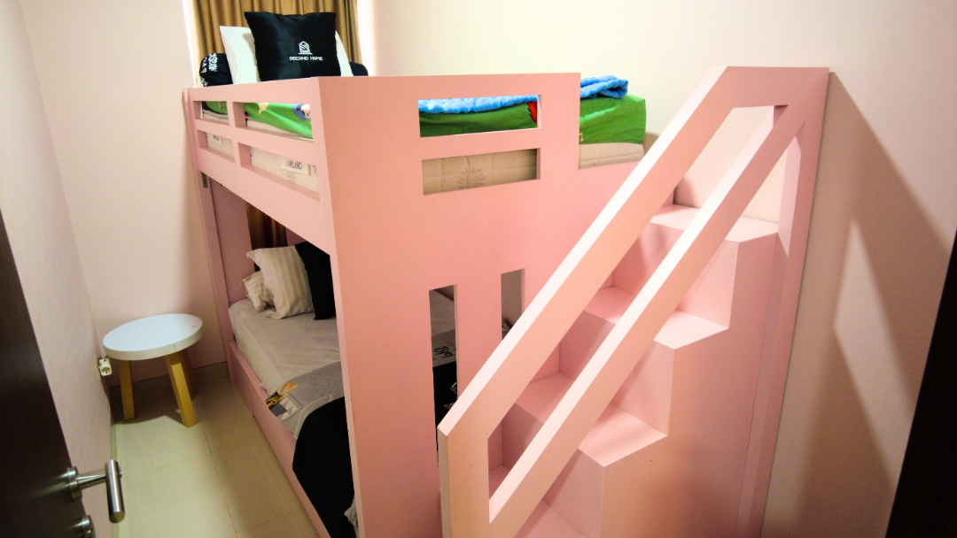 ipe 2 Bedroom tersedia dengan 1 kamar queen dan 1 kamar single bed. Dirancang dengan konsep ruang terbuka, unit ini dilengkapi ruang tamu yang luas, dapur lengkap, jendela besar, dan berbagai fasilitas di dalam kamar untuk kenyamanan Anda dan keluarga.